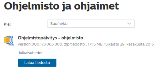 Huomautus: yleensä ohjelmistopäivitys on saatavilla pakattuna zip-tiedostona, jonka purkamiseen tarvitaan erillinen ohjelma (esimerkiksi Winzip tai WinRar).